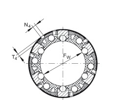 - 孔的位置相對于軸承寬度 L 是對稱的