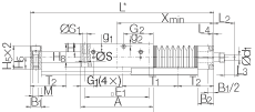 - 只適用于如下標(biāo)準(zhǔn)。 對(duì)不是標(biāo)準(zhǔn)產(chǎn)品,如下: L tot = A + B1 + B2 + 總行程 以及 Xmin = (A/2) + B2 (GH = 總行程)