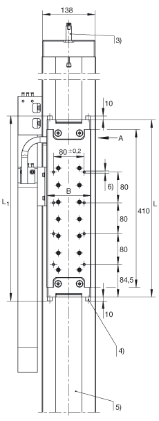 • L2 = 總行程 + L1 + 54 Ltot = 總行程 + L + 54 + 86 總行程= 有效行程 + 2 x S 允差 S 指適合于特殊應用的安全范圍,至少應為50 mm;總行程單位為mm。 最大單根支撐軌長度 L2 = 8000 mm