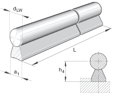 • 單根軸及支承軌單元的最大長度;較長的單元可以分段供貨。 根據軸及支承軌單元的長度,導軌可以由幾部分組成。