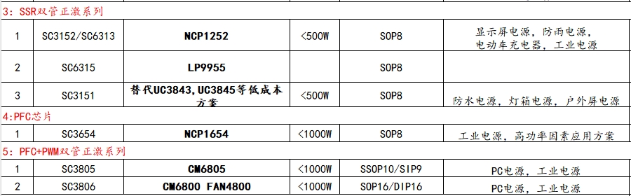 SSR雙管正激系列是鼎芯微電子推出的一類高性能電源管理芯片,適用于高功率應用場景,如顯示屏電源、防雨電源、電動車充電器、工業電源等。以下是該系列部分型號及其替代型號: