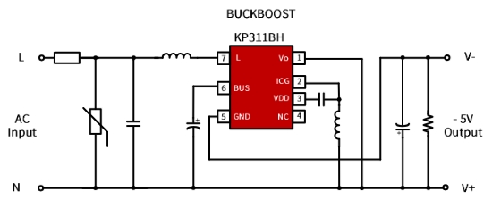 輸入電源:輸入電源通過變壓器的初級繞組連接到 KP311BHWG 的輸入端,為芯片提供工作電壓。