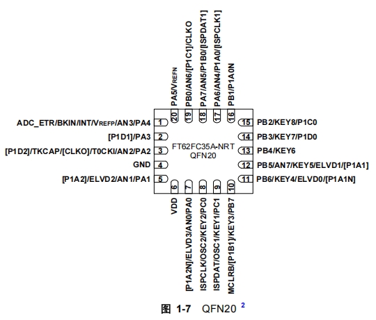 FT62FC6X系列微控制器根據(jù)不同的封裝類(lèi)型和功能需求,提供了多種引腳配置。以下是結(jié)構(gòu)框圖及一些常見(jiàn)的引腳及其功能介紹: