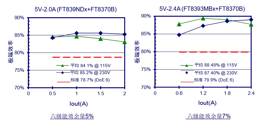 FT8370X系列芯片在不同負(fù)載條件下均能保持高效率。例如,F(xiàn)T8370B在2.0A - 2.4A輸出范圍內(nèi),效率可達(dá)90% @ 115V和90% @ 230V。FT8370CP在2.5A - 3.4A輸出范圍內(nèi),效率可達(dá)88.48% @ 115V和87.40% @ 230V。