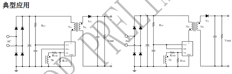 AC輸入:通過整流濾波后,得到直流電壓VIN,為變壓器原邊提供輸入電壓。