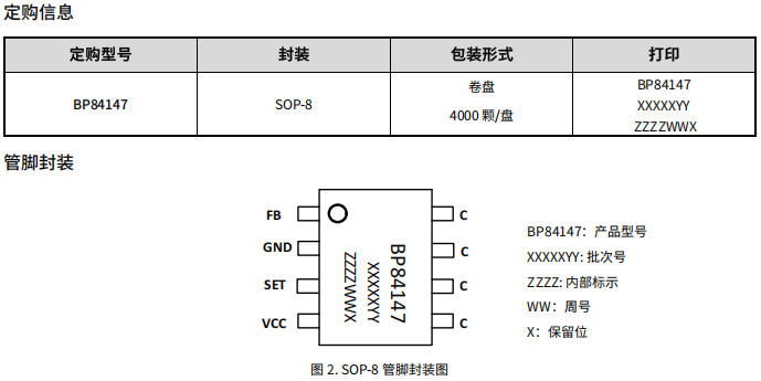 | 1 | FB | 反饋電壓檢測,同時檢測變壓器退磁信號,實現谷底開通 |
