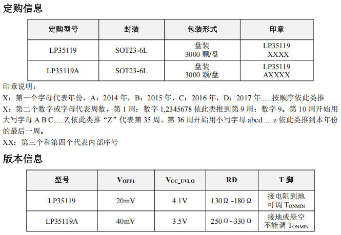 | 參數 | LP35119 | LP35119A | MP6908參考 |