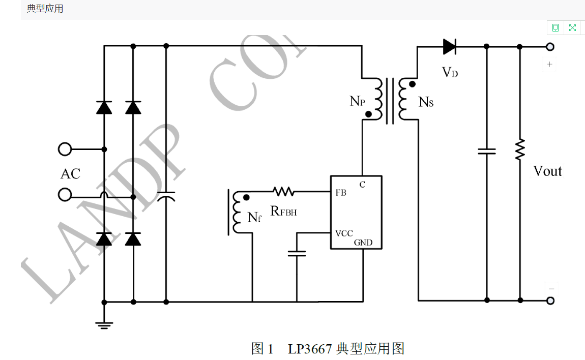 LP3667AH是一款高度集成的隔離型適配器和充電器的自供電 PSR 控制芯片,外圍設(shè)計極其簡單。LP3667AH固定原邊峰值電流, 通過變壓器原副邊匝比來設(shè)置輸出恒流點;通過設(shè)定一個 FB 電阻來設(shè)置輸出恒壓點。為了實現(xiàn)系統(tǒng)成本的極致簡化, LP3667AH 內(nèi)置啟動電路,外圍不需要啟動電阻,內(nèi)置 FB 下偏電阻,固定峰值電流來實現(xiàn)取消限流電阻;采用自供電的方式來取消輔助繞組 VCC 供電二極管。