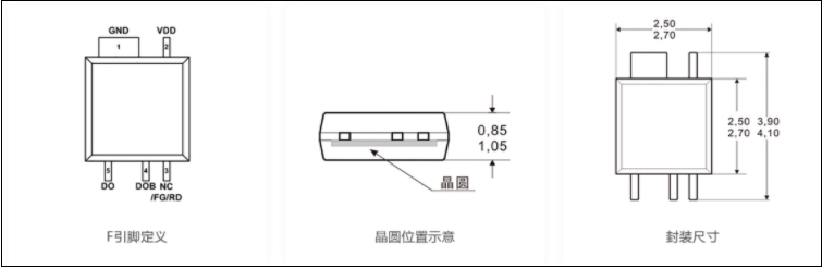 SOT335封裝的尺寸為4mm×2.6mm×0.95mm,這種小尺寸設(shè)計使得它非常適合用于空間受限的應(yīng)用場景。它的直腳封裝設(shè)計使得芯片可以更靠近磁條,而內(nèi)部打線針對單面板應(yīng)用進(jìn)行了專門優(yōu)化。