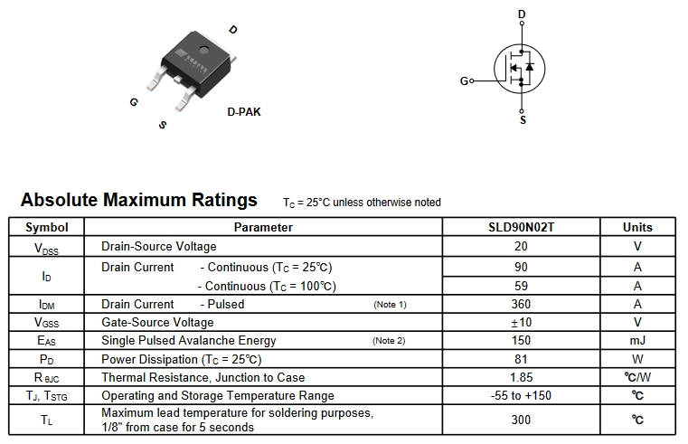 快速開關特性:SLD90N02T具有快速開關能力,有助于減少開關損耗,提高整體電源效率。