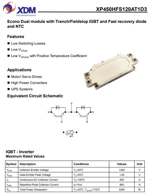 XP450HFS120AT1D3芯達茂 國產IGBT 功率模塊 450A 1200V