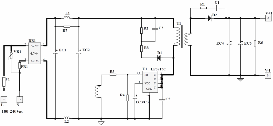 LP3715C:作為PWM控制器,負責(zé)調(diào)節(jié)輸出電壓和電流。